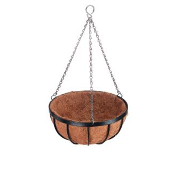 Georgian hanging basket comes complete with molded coco fiber liner attached to basket. Heavy-duty steel rod and strip construction.