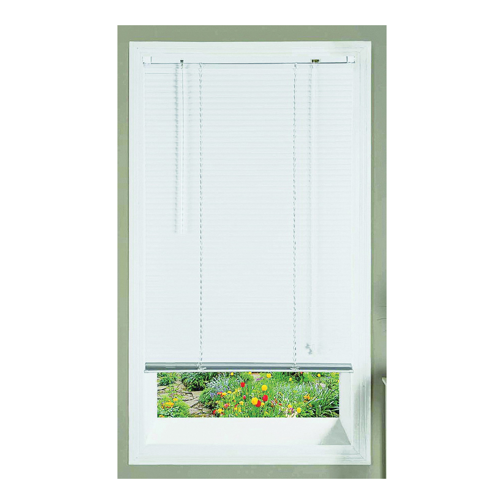 Aluminum slats of size 1 in. Light filtering. Washable. Easy to install. Tasseled ends for safety. Mounting instructions and hardware included. Top bar width includes brackets.