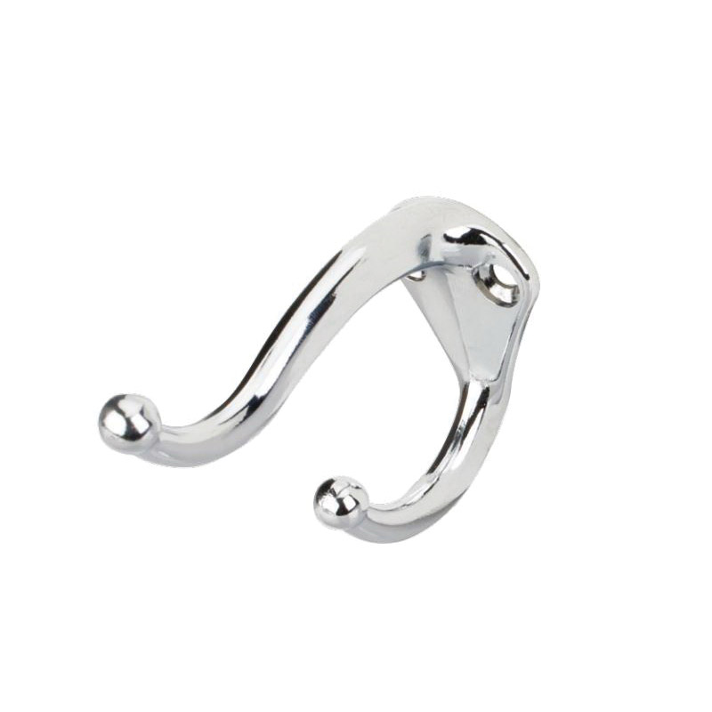 Hardware Resources Garment Hook, 2 Hooks, Steel, Polished Chrome, Projection: 2-3/4 in, Dimensions: 1-1/16 in L x 1-1/2 in W, Includes: (6) 3400-B Screws