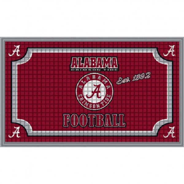 Team Sports America Floor Mat, Legend: ALABAMA FOOTBALL, 30 in L, 18 in W, 1/4 in Thick, Surface Material: Polypropylene, Rubber Backing, Indoor/Outdoor: Outdoor